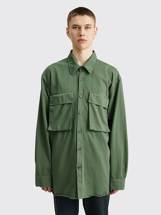 Inspired by the pure joy of social gatherings and shared experiences the. Voyde Oversized Cotton-Twill Jacket. All Clothing Shoes Accessories Lifestyle What To Wear. Similar ones also available. Button placket Patch pocket at chest Short sleeves Relaxed fit Silk Made in Belgium. Similar ones also available. Mens olive green and multicolor Dries Van Noten polka dot shirt with camp collar flap pocket at chest rib knit trim one-button barrel cuffs and button closures at front.